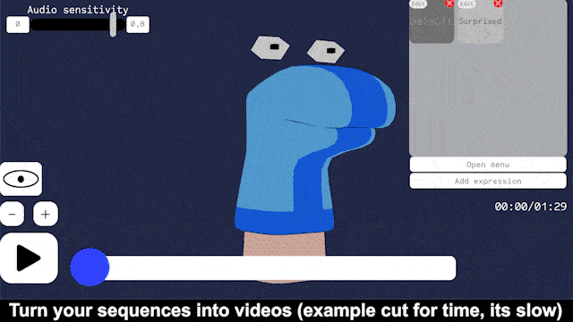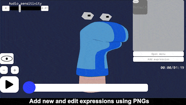 In this app you input your own avatar as diferent images in diferent expressions to automate the proccess of them changing from a not talking pose to a talking pose and use expressions to change what two images they change between and finally be able to render it all into a video.